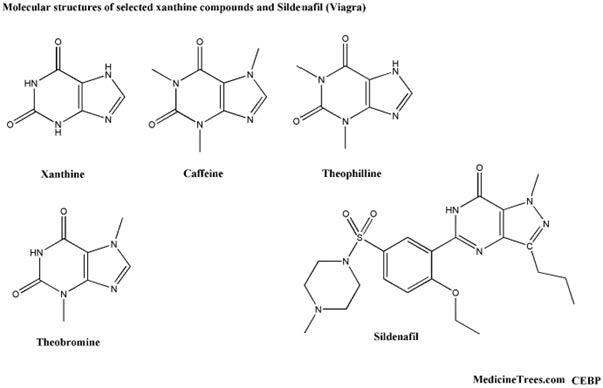 When drug developers come across a clinically useful naturally-occuring compound, they immediately tinker with it with a view to improving its safety and/or efficacy, to find new applications, or to obtain exclusivity through new patents. This tinkering involves structural modification of the original compound by adding or removing bits to it and testing its activity, a process, analogous to Lego building, they refer to establisihng sructure-activity relationships. Cynics call it the molecular roulette approach to drug discovery but this is unkind as much of the search is targeted and informed by sophisticated drug-receptor or target modelling.. Thousands of derivatives of the xanthine alkaloids have been synthesised this way and among them was sildenafil. Figure 1 illustrates how the basic xanthine alkaloids are structurally related and how modifications lead to sildenafil.