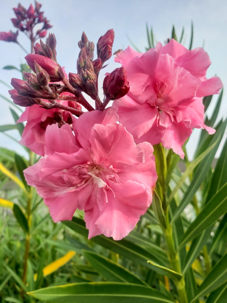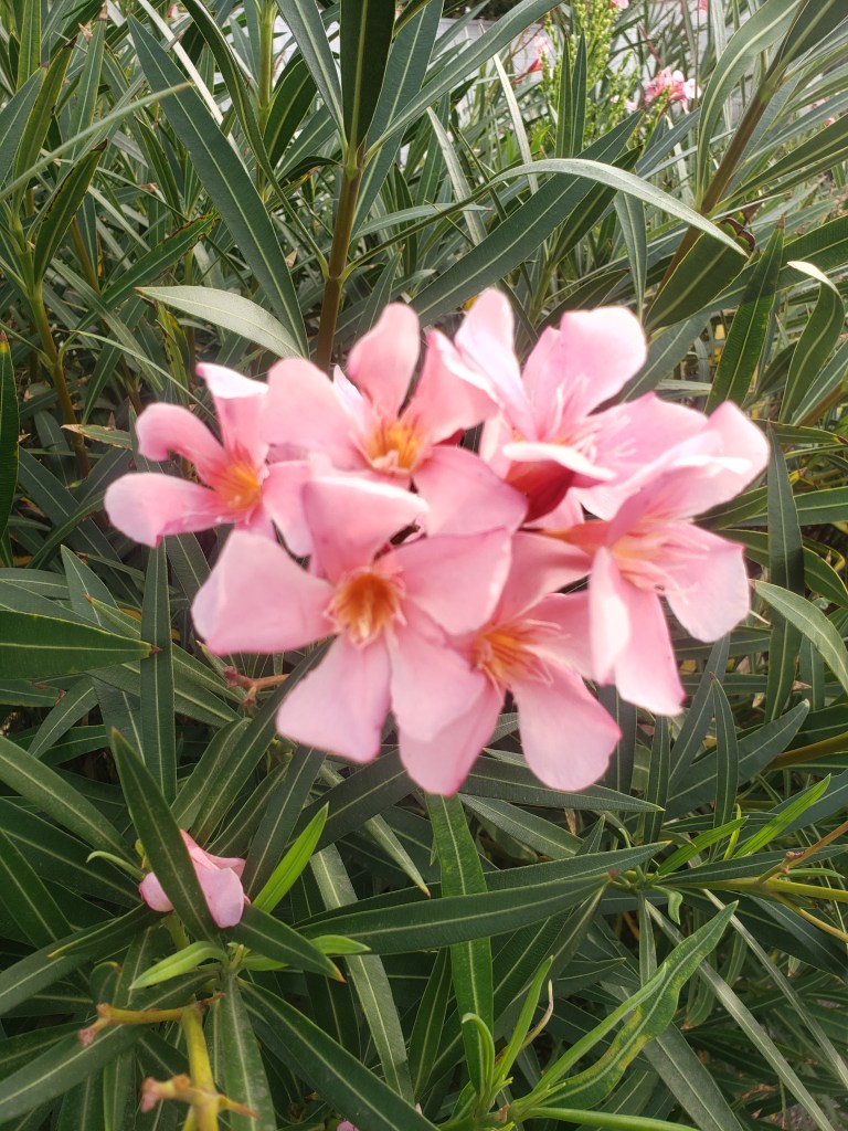 During a visit to the Mauritius Pamplemousses Botanical Garden in November 2022, I came across a tall plant with attractive yellow flowers labelled Cascabela thevetia (Yellow Oleander, Laurier jaune). The name is probably derived from the Spanish ‘cascabel’ which means ‘jingle bell’; an apropriate name given the shape of the flowers (see photos). Most of us are more familiar with Cascabela species with pink to red flowers (see photos of beautiful specimens taken on the Côte d’Azur in autumn 2023).