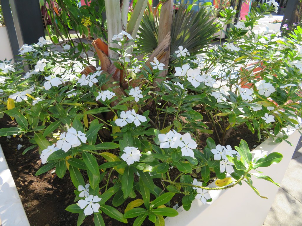 Medicines often have lovely names. Vincristine and vinblastine are two important anticancer medicines obtained from the periwinkle. In the beautiful island of Mauritius where I took most of the photographs and where the periwinkle, Cantharanthus roseus or Vinca rosea (Madagascar periwinkle) is as equally at home along street borders as in well-manicured gardens, some will tell you that vincristine reminds them of the call, vini Cristine (come Cristine) in Creole, as if to beckon the lady for a walk among the lovely wildflowers. Usually rose pink, as the name suggests, cultivars of the periwinkle now produce flowers ranging from red to lilac and white.
