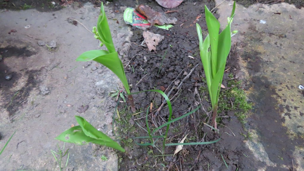In a comment to my recent post on Wild Garlic (Allium ursinum), a reader, Marie-Noelle Chung helpfully drew my attention to the possibility and danger of confusing it with the poisonous Autumn Crocus (Colchicum autumnale) on which I posted earlier. By coincidence, when I took the photos of the wild garlic in early April 2024, I also took pictures of the crocus in the same park (Darley Country Park in Derbyshire) on the same day. The distinguishing feature is the strong characteristic garlic smell of Allium ursinum. Colchicum autumnale also does not flower in spring but in autumn, hence its name. It is also said that some may confuse wild garlic with Lily of the Valley (Convallaria majalis) which contains toxic molecules (cardiac glycosides) similar to the heart drug digoxin and digitoxin obtained from the foxglove. Again, the distinguishing feature is the garlic smell. I did not find any Lily of the Valley growing in Darley Park on my April 2024 visit, but I found some in my garden today (14 April 2024) albeit still too early for full growth and bloom. I attach four photos to show their differences (Photo 1 – Wild Garlic; Photo 2 – Autumn crocus; Photo 3 – Lily of the Valley in early growth in my garden; Photo 4 – Lily of the Valley in full growth and bloom. People have also mistaken daffodils for spring onions (another allium; see earlier separate post). So, I am adding this reminder here to prevent accidents.